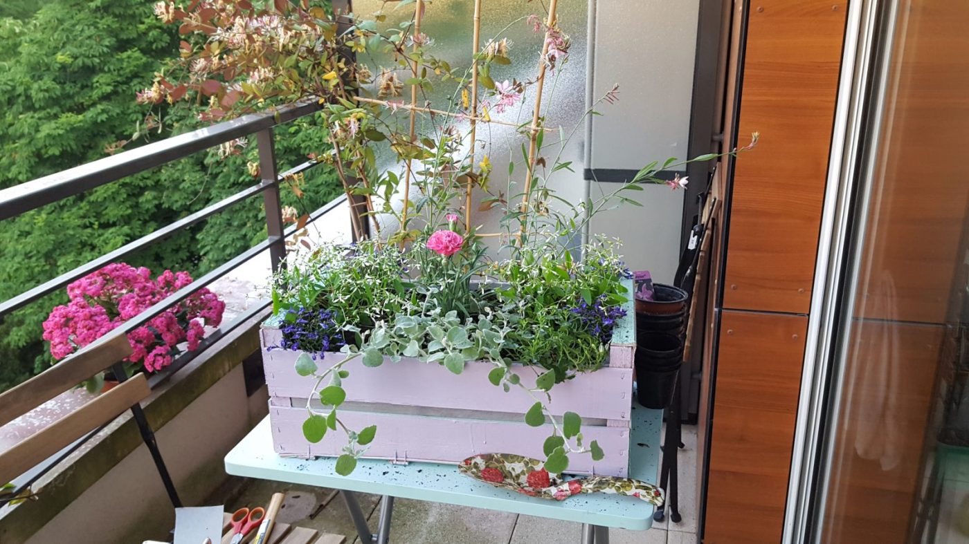 Vous vous rappelez sans doute de la mention « créer une jardinière fleurie d’été » dans Les objectifs du mois de mai. Ne vous en faites pas, elle n’est pas restée lettre morte et je m’en suis bien évidemment occupée.