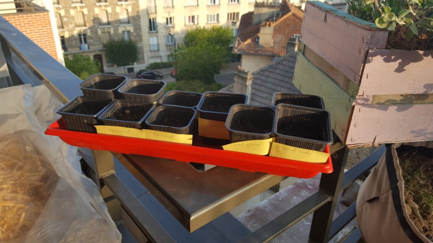 L’important, une fois qu’on a fait les semis c’est d’étiqueter les petits pots pour ne pas se mélanger les pinceaux (parce qu’en mars j’avais un peu trop oublié ce que j’avais semé et me suis retrouvée avec beaucoup trop de bébés aubergines et tomates sur les bras !)