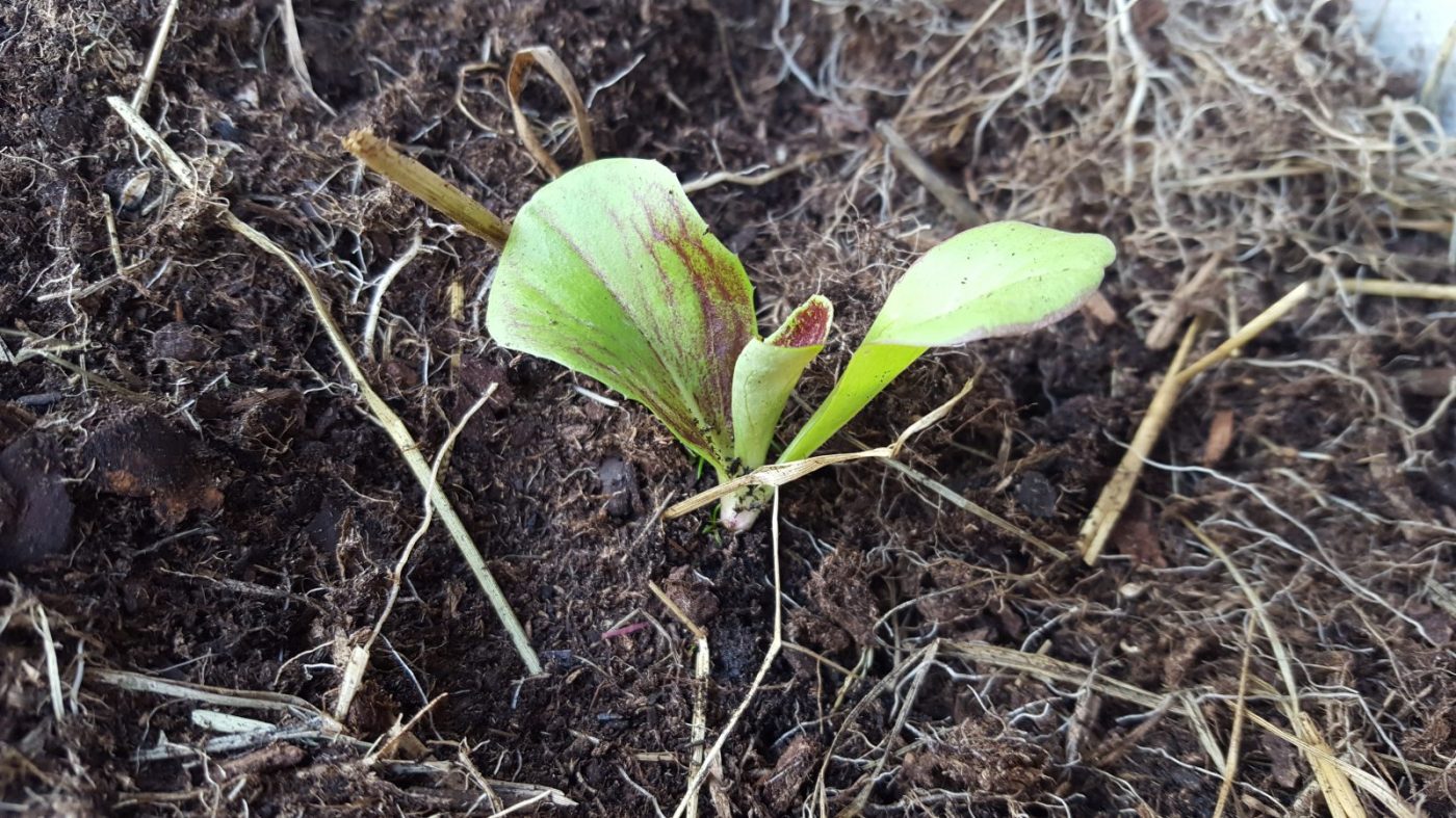 Petite note, vous avez bien remarqué que les plants de chicorée n’ont pas quatre feuilles mais comme ils étaient deux (normalement il faut enlever le plus faible mais ça me fait mal au cœur) ils se faisaient trop de concurrence.