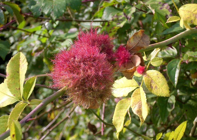 Nos chères plantes ne sont bien sûr pas épargnées. Je vous avais déjà parlé des champignons qui parasitent nos plantes. Apprenez aussi que ce sont souvent des espèces de guêpes qui sont à l’origine de parasitisme. Vous avez déjà entendu parler de gale n’est-ce pas ? Celle qui gratte, qui vous fait penser à une maladie sortie tout droit du Moyen Âge ?… Ici, je vous parle de galle sur une plante : la responsable est souvent une larve de guêpe qui conduit la plante à créer une excroissance foliacée (une feuille transformée) pour se protéger et se nourrir (ben tiens ! Le gîte et le couvert, typique du parasite ça !). Si elles ne sont pas trop nombreuses et que votre plante est assez grande, quelques gales ne sont pas inquiétantes. Et puis, ce pourrait être l’occasion pour qu’une autre guêpe transperce la galle et ponde directement son œuf dans la larve du parasite. Un parasite de parasite : je ne vous avais pas dit que la nature est bien faite ?