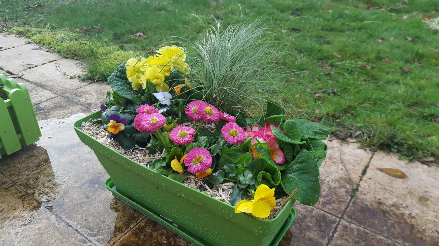 Bref, ça vous met le moral dans les chaussettes et, pour y remédier et compléter mon article du mois de janvier dernier « Une jardinière pour cet hiver », je vous propose une autre idée pour les égayer avec des plantes qui fleurissent pendant cette période. Cette fois-ci j’ai déniché une jardinière plus grande qui permet de faire deux rangées de plantes (donc une jardinière luxuriante !). C’est maman qui a été ravie !