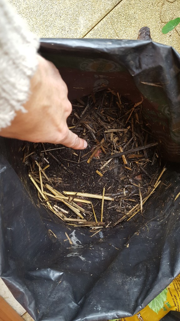 Y a pas à dire, on a été chouchoutées. Grâce au compostage de surface, la terre stérile de mon sac de terreau est devenue foisonnante de vie !