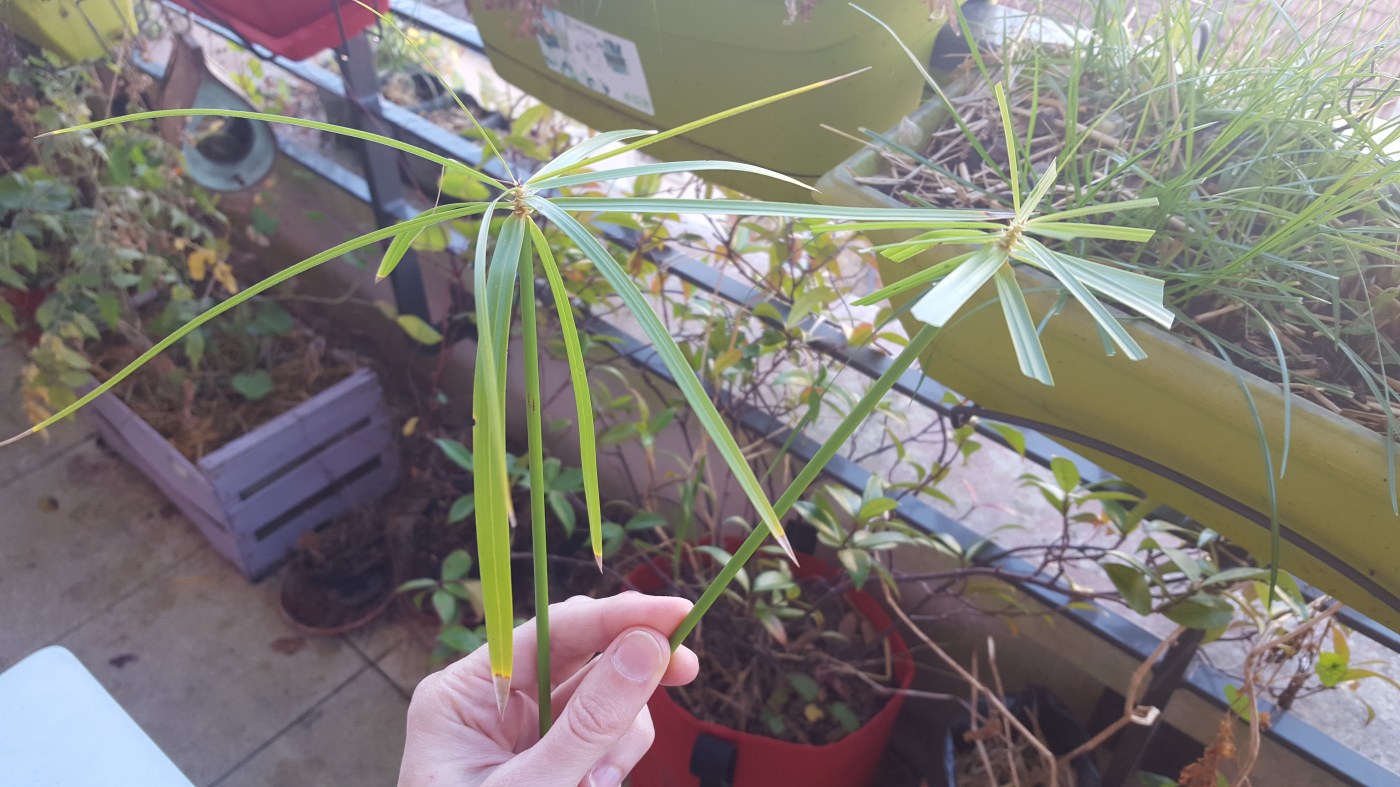 Et hop ! Voilà un jeune papyrus qui grandira très vite au printemps !