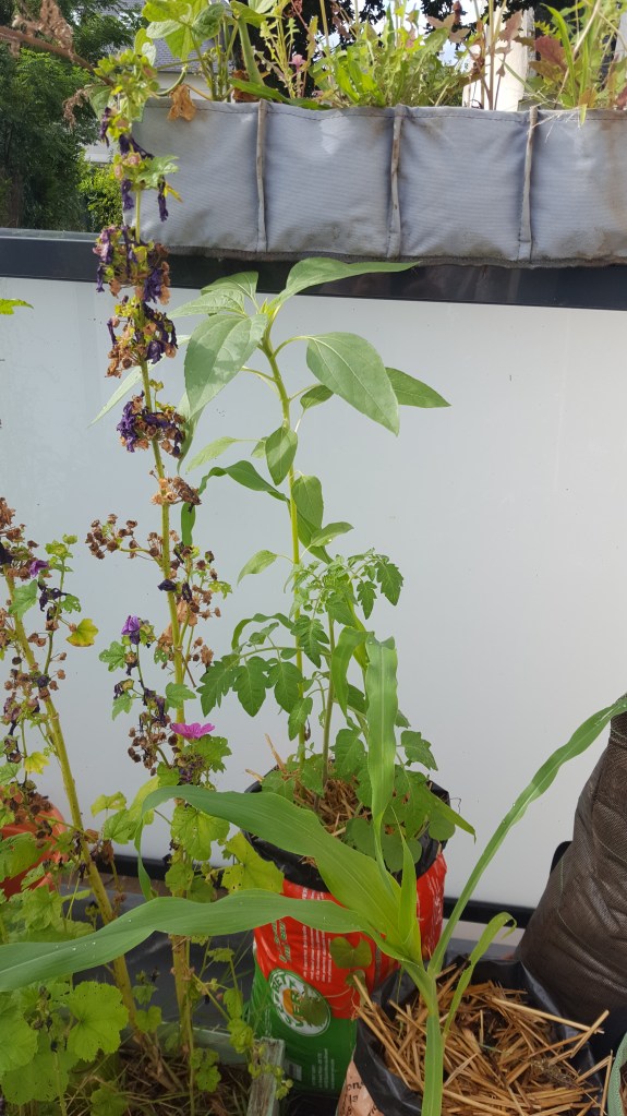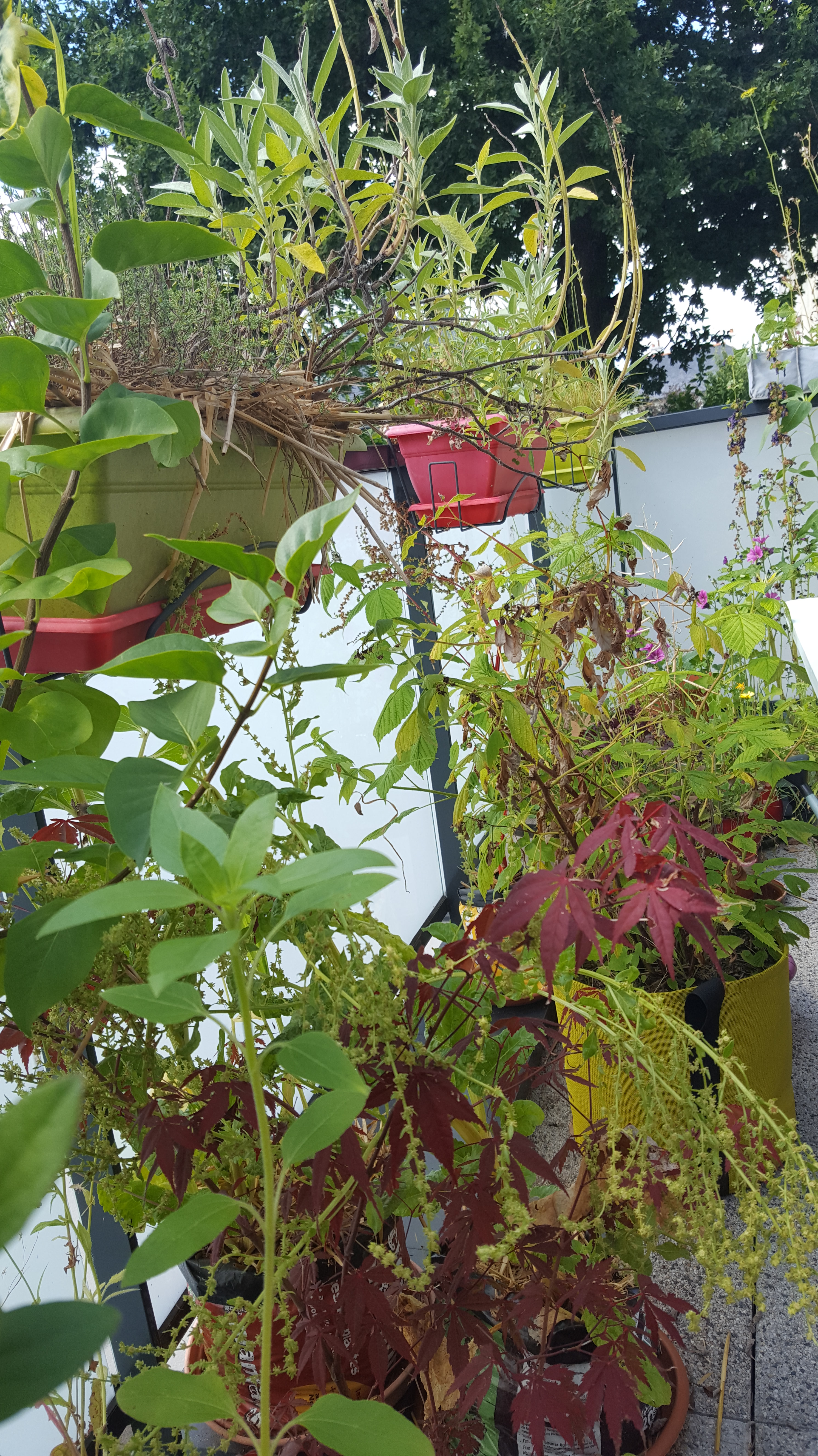 Je n’ai pas semé grand-chose cette année et comme je n’étais pas souvent chez moi j’ai privilégié des plantes qui n’ont pas besoin de beaucoup d’entretien et qui apportent des couleurs à un balcon.
