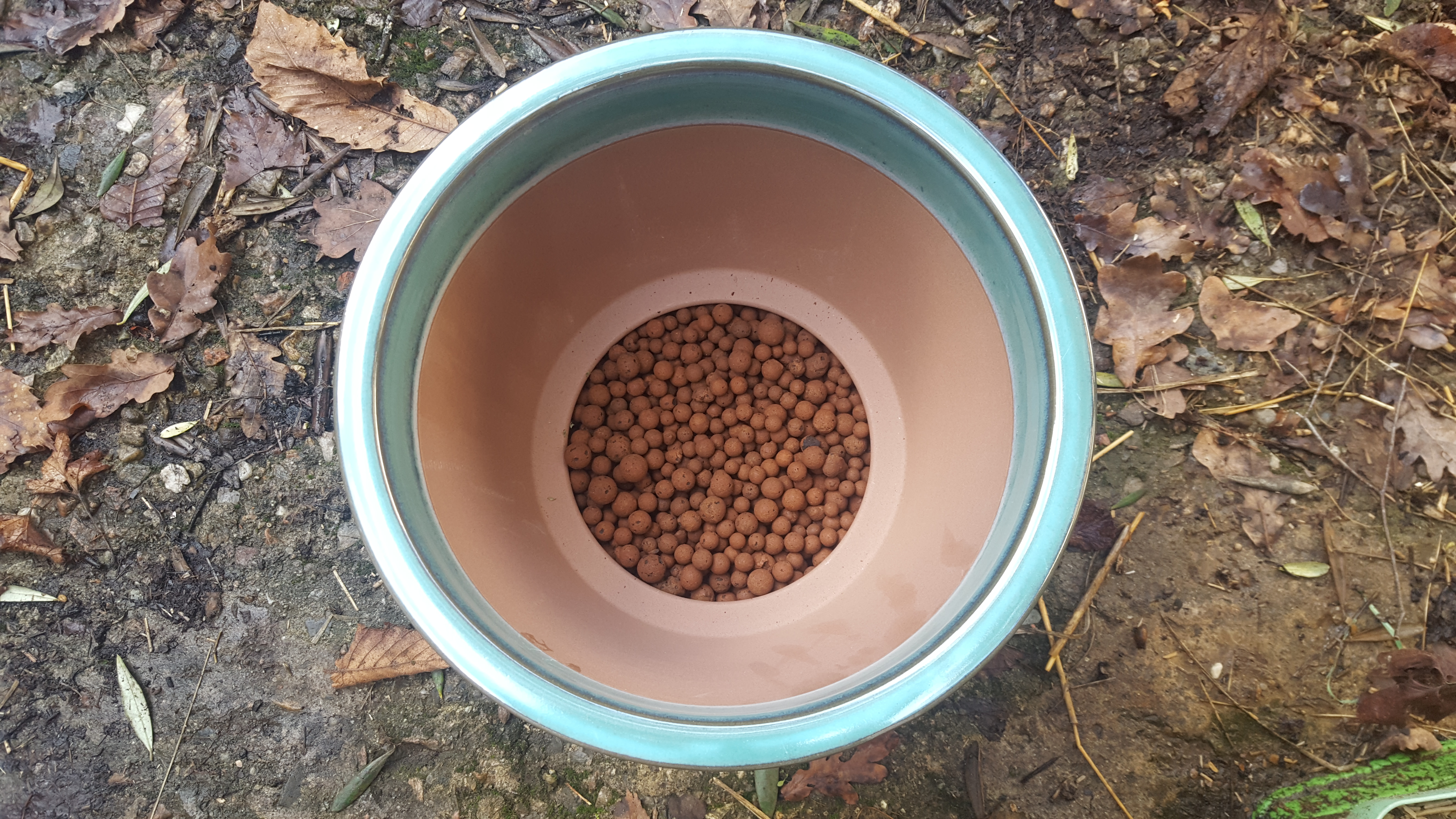 - Des billes d’argile (pour le drainage). Ce n’est pas une obligation et si vous n’en avez pas contentez-vous de boucher le trou de drainage du pot par une pierre ou deux, ça fera grandement l’affaire !
