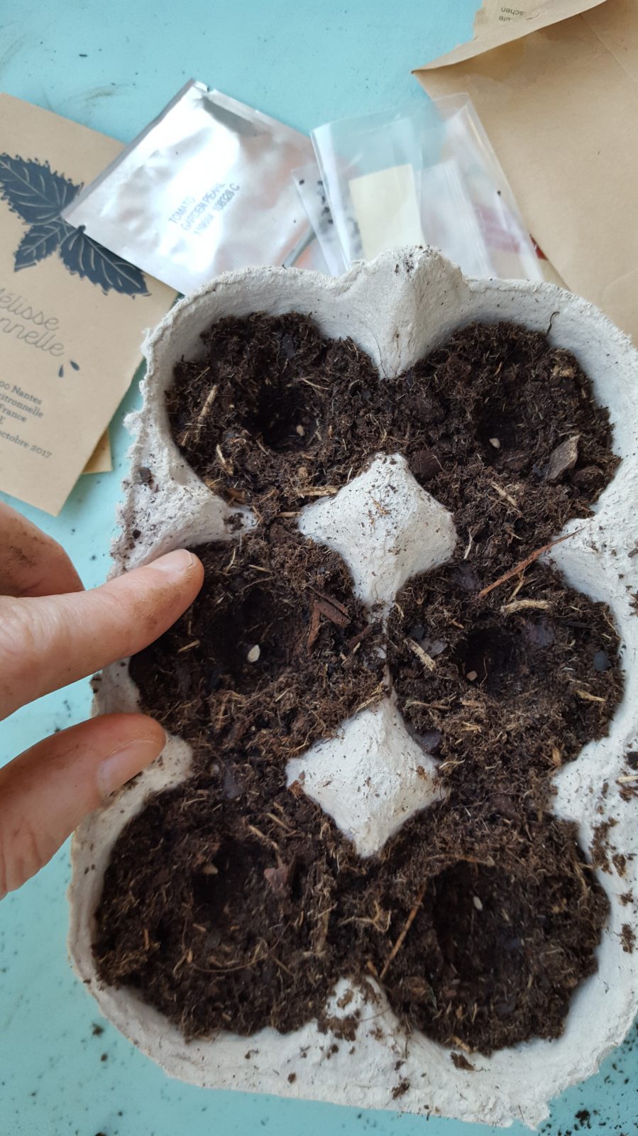 Plutôt que d’acheter un plant tout prêt, je préfère prendre soin de la graine, guetter son éclosion, m’inquiéter quand ça ne sort pas assez vite (mon Dieu, le terreau est trop humide, trop sec ? Il y a deux heures que je les ai semées, pourquoi ça ne SORT PAS ?). Bref, semer nous apprend à être patients finalement (si ça marche, ça, je ne sais pas !).
