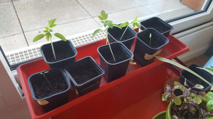 - Quand vos plantules ont un mois et demi (je suis émue, elles grandissent si vite) sortez-les de temps en temps en journée quand il y a peu de vent afin que les tiges s’endurcissent et que le choc entre l’intérieur et l’extérieur lors de la plantation ne soit pas trop intense.