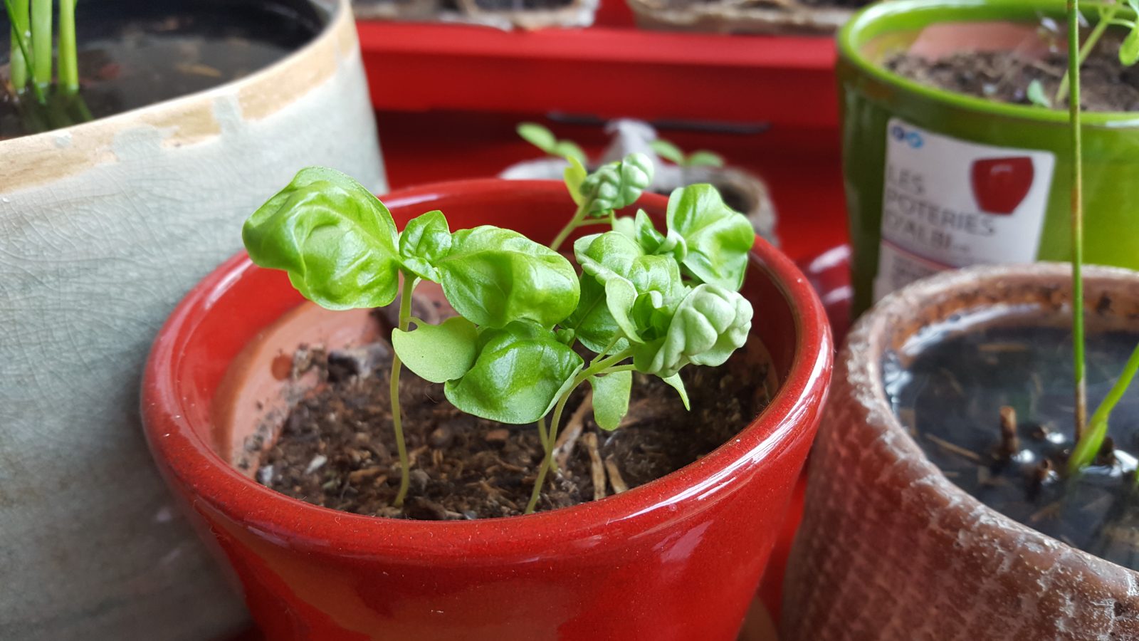Le basilic n’est pas un semis facile et il m’est arrivé de devoir refaire une vague de semis parce que la totalité de mes plants sont morts à cause d’un champignon : cela s’appelle la fonte des semis (une trop forte humidité est propice à ce gentil gnongnon).
