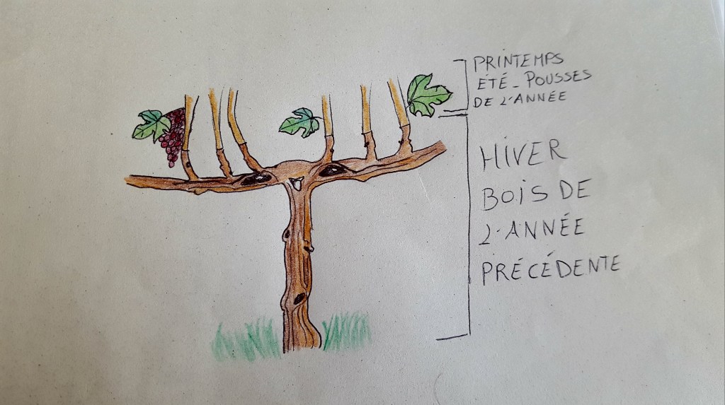 La taille de formation de la vigne se fait en janvier-février (c’est le meilleur moment !). Voilà une belle activité pour les jours frisquets (tailler, ça réchauffe) !