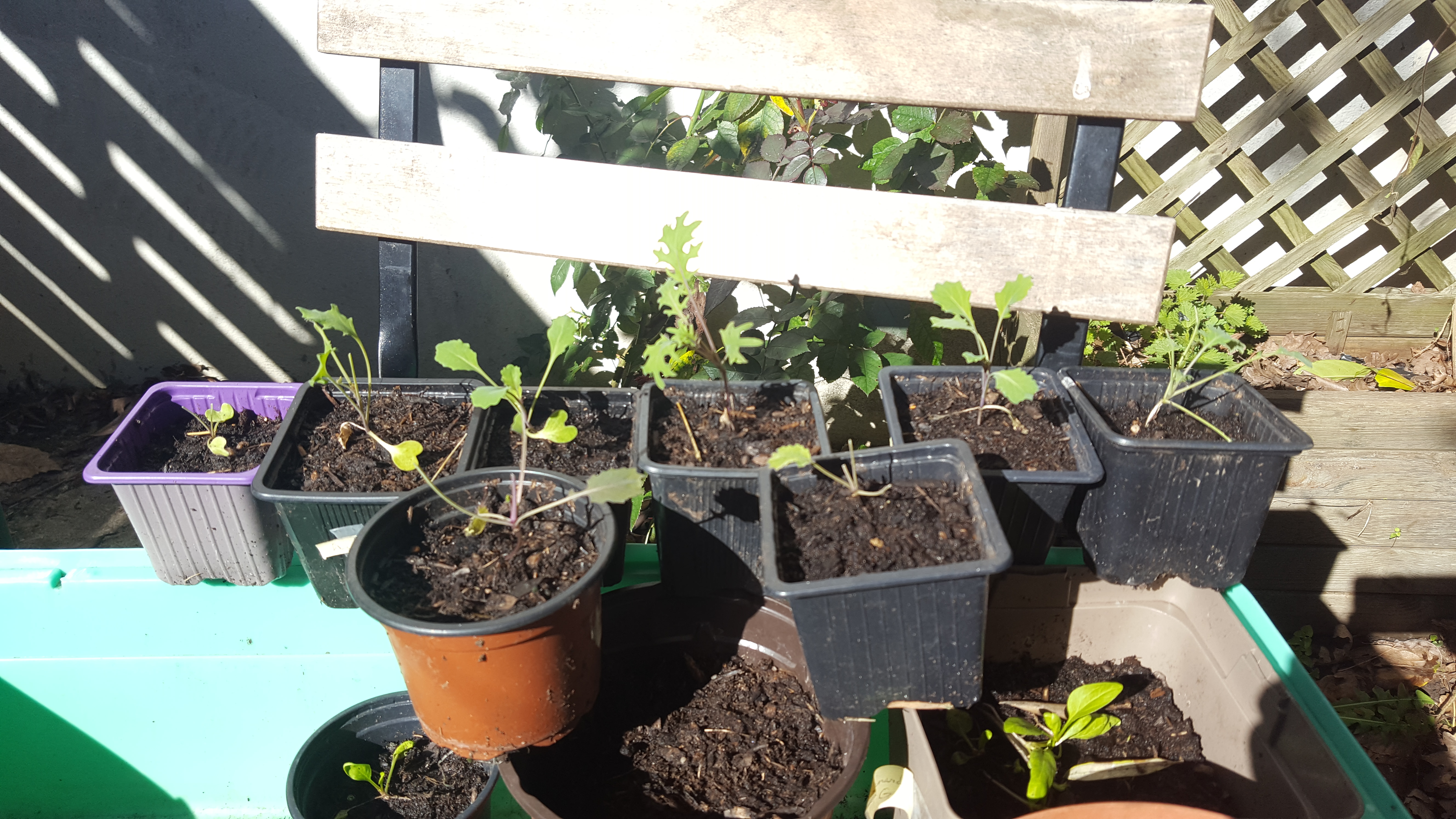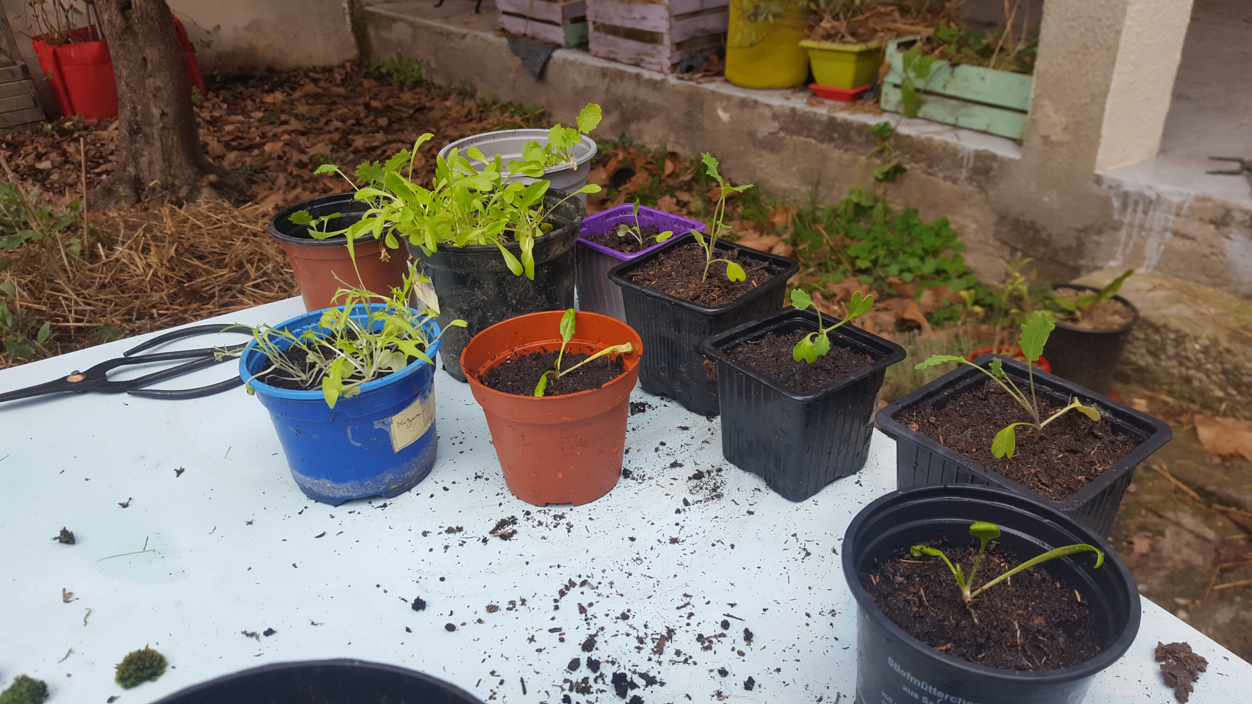 - Repiquez vos plants semés en octobre. Pour moi, les choux brocolis et les choux kale ainsi que les petites salades et le mizuna. Figurez-vous qu’une gentille chenille (une noctuelle) a eu le temps de m’en boulotter deux-trois comme ça, l’air de rien alors que mes pots étaient perchés sur une chaise ! Heureusement que j’ai l’œil aiguisé !