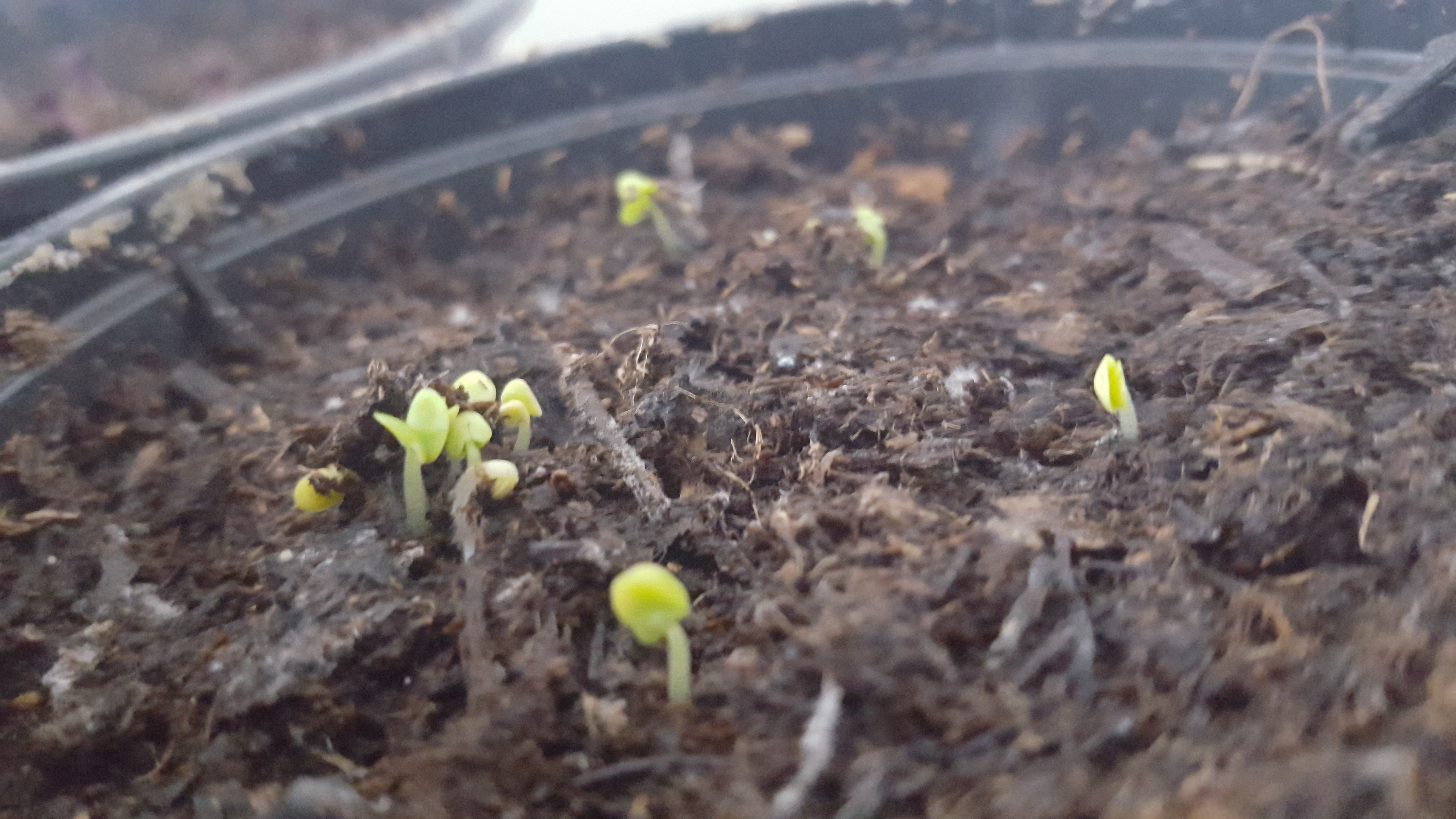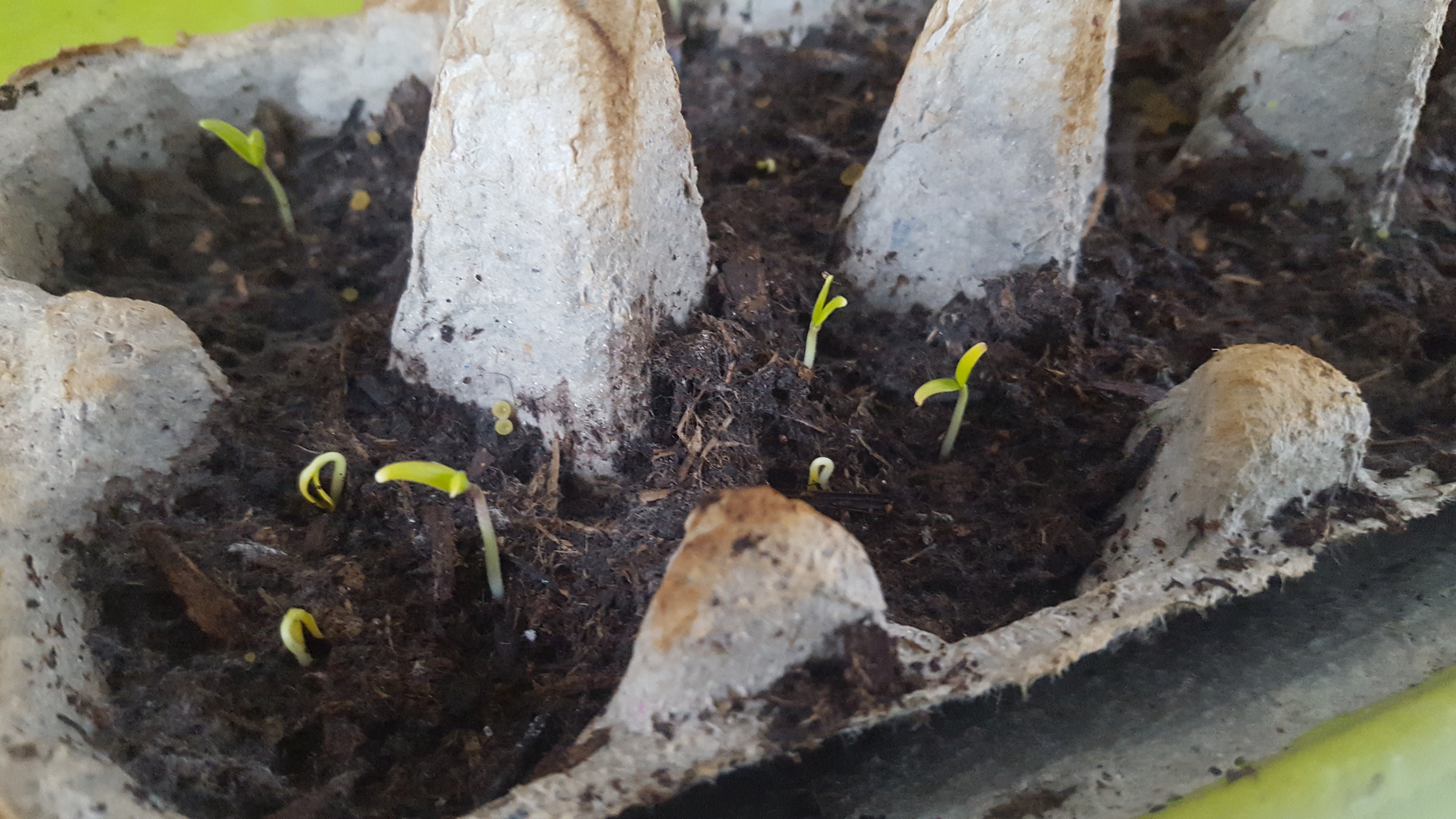 - C’est la première année que je fais des piments, poivrons et aubergines si tôt dans l’année ! J’ai effectué les semis le 15 février et ça y est : grâce à la chaleur tropicale qui règne dans mon bureau (c’est la pièce la plus lumineuse, je travaille en short mais passons), les voilà qui sortent de terre depuis hier, le 28 ! Donc en tout 13 jours pour lever, pas mal !