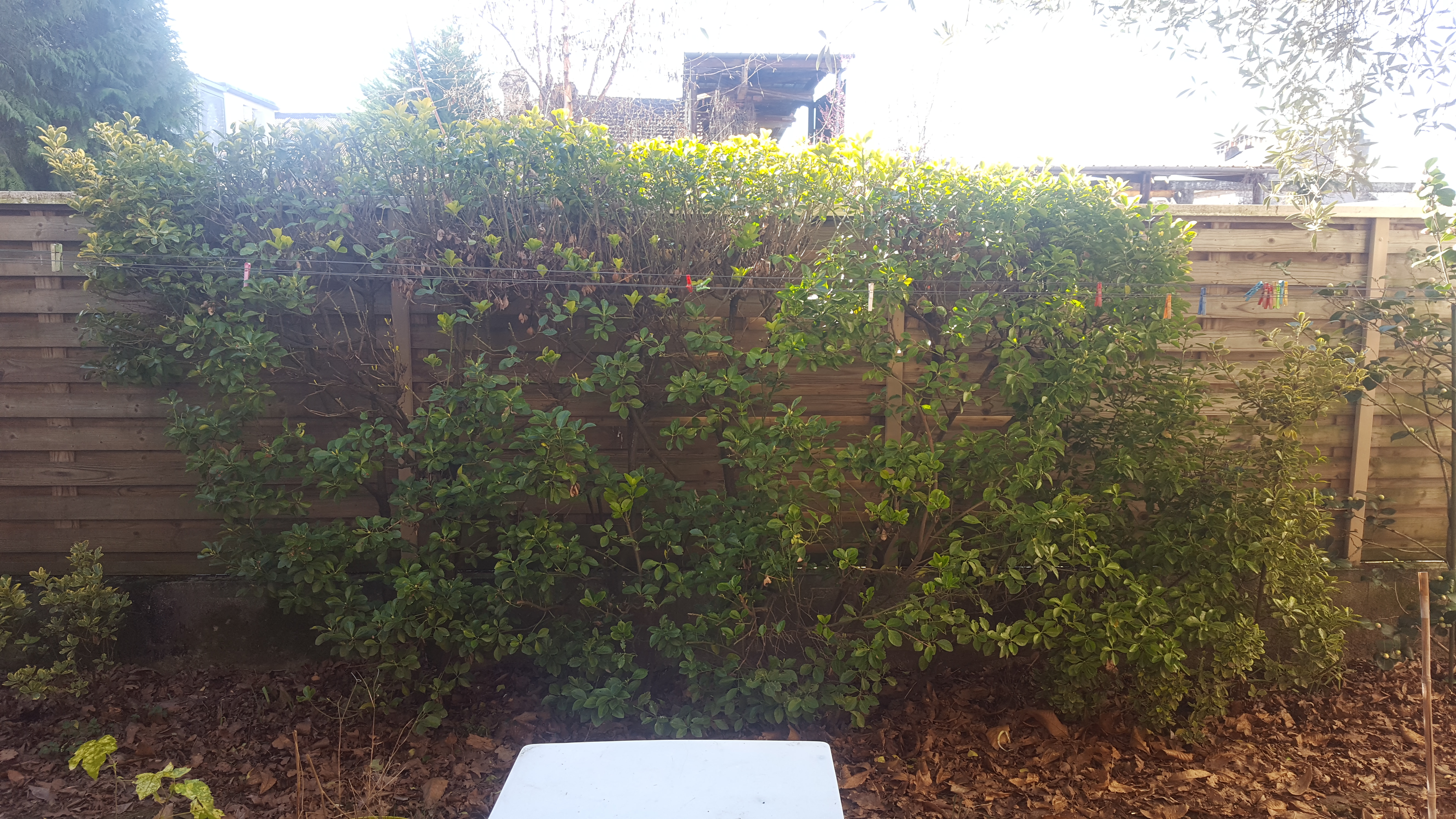 - Taillez vos haies (avant avril). Je voulais faire de la place pour le bébé noisetier (que je n’ai toujours pas planté !)et pour étendre le linge mais j’ai peur de finir par faire une boule à zéro. Je me connais, quand je commence avec le sécateur, je ne m’arrête plus. Peut-être que le problème ce n’est pas la haie en elle-même mais le fil à linge qui a été installé trop près !