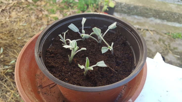 Eh bien comme toutes mes boutures n’ont pas pris, j’ai bouturé de la sauge, de la lavande et, à nouveau, du romarin.