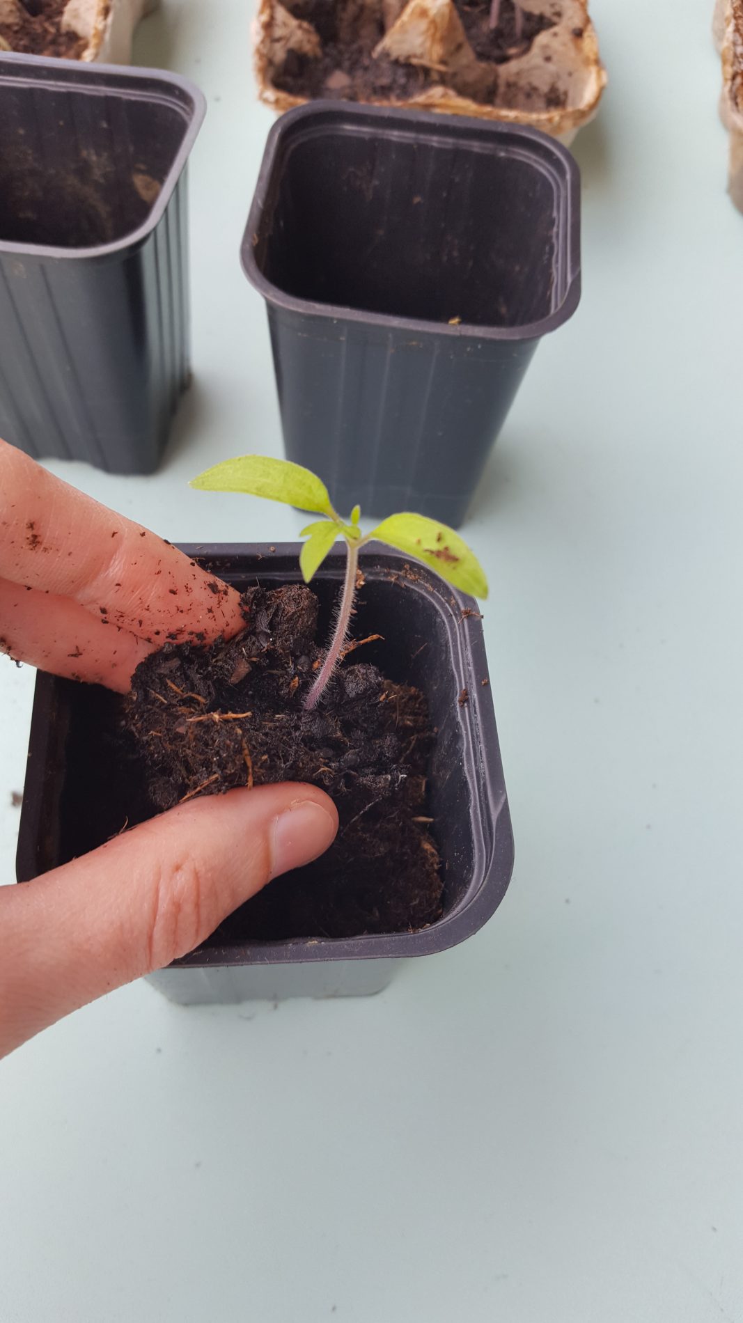 Les racines de ce petit plant de tomate ne demandent qu’à conquérir un nouvel espace !
