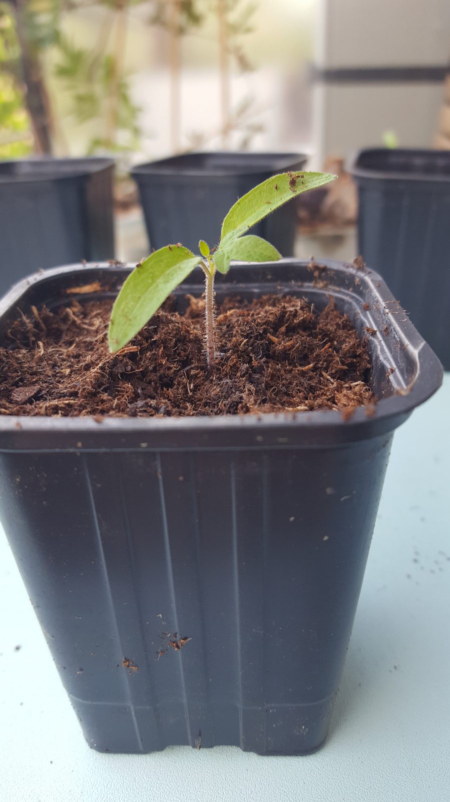 Ne vous inquiétez pas si votre aubergine baisse du nez une demi-heure après le rempotage. C’est une opération qu’il vaut mieux n’effectuer qu’une fois dans sa vie (une fois dans le contenant où vous l’avez semé et la deuxième et dernière fois en pleine terre), ça la traumatise. J’ai cru pendant un instant que je l’avais tuée ! Heureusement ce n’était pas le cas, et une heure après elle s’est redressée et est redevenue rigide (parce qu’elle était devenue toute molle comme si plus rien ne circulait là-dedans !)