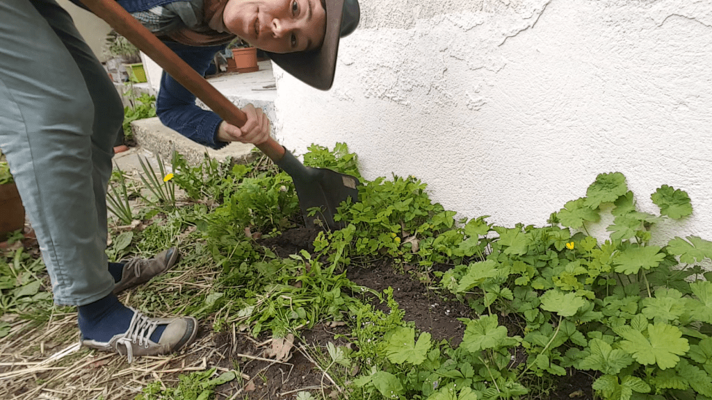 - Parce que creuser ce n’est pas mon truc ! En plus, vous le verrez dans ma vidéo, l’endroit que j’ai choisi, adossé à un mur, est hyper caillouteux.