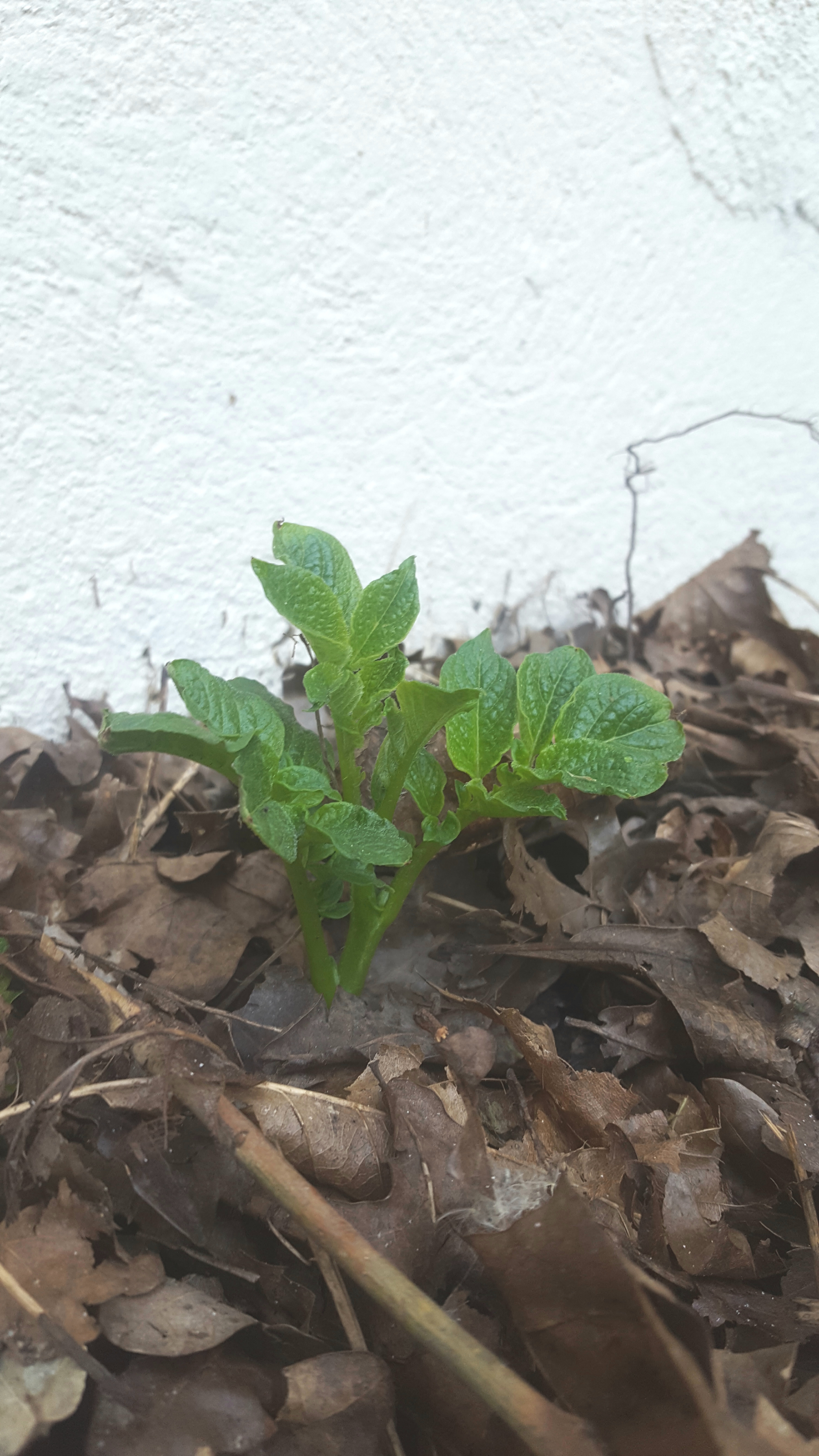 Ci-dessous mes premières patates sortent de terre le 6 mai. La plus grande c’est celle qui est en terre !