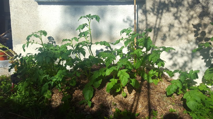 • butté mes pommes de terre le 21 mai. Mes quoi ? Vous n’en avez pas entendu parler ? Ma vidéo YouTube ici ! Traditionnellement on recouvre de terre ses plants de pommes de terre mais j’ai utilisé la méthode Damien Dekarz (avec de la pelouse, sauf que j’en avais pas alors j’ai utilisé du paillis de cochons d’Inde : j’ai recyclé mon compost quoi !). Pourquoi butter ? Pour rendre les plants plus forts à leurs bases et, dans le cas des patates qui produisent leurs précieux tubercules dans le sol, augmenter leur potentiel de production.