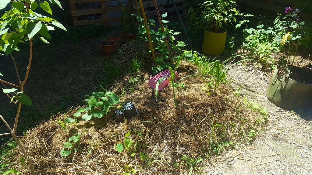 • La milpa : j’ai planté mes premiers maïs le 10 mai suivis du haricot et de la courgette – bonne petite dernière – le 27 mai).