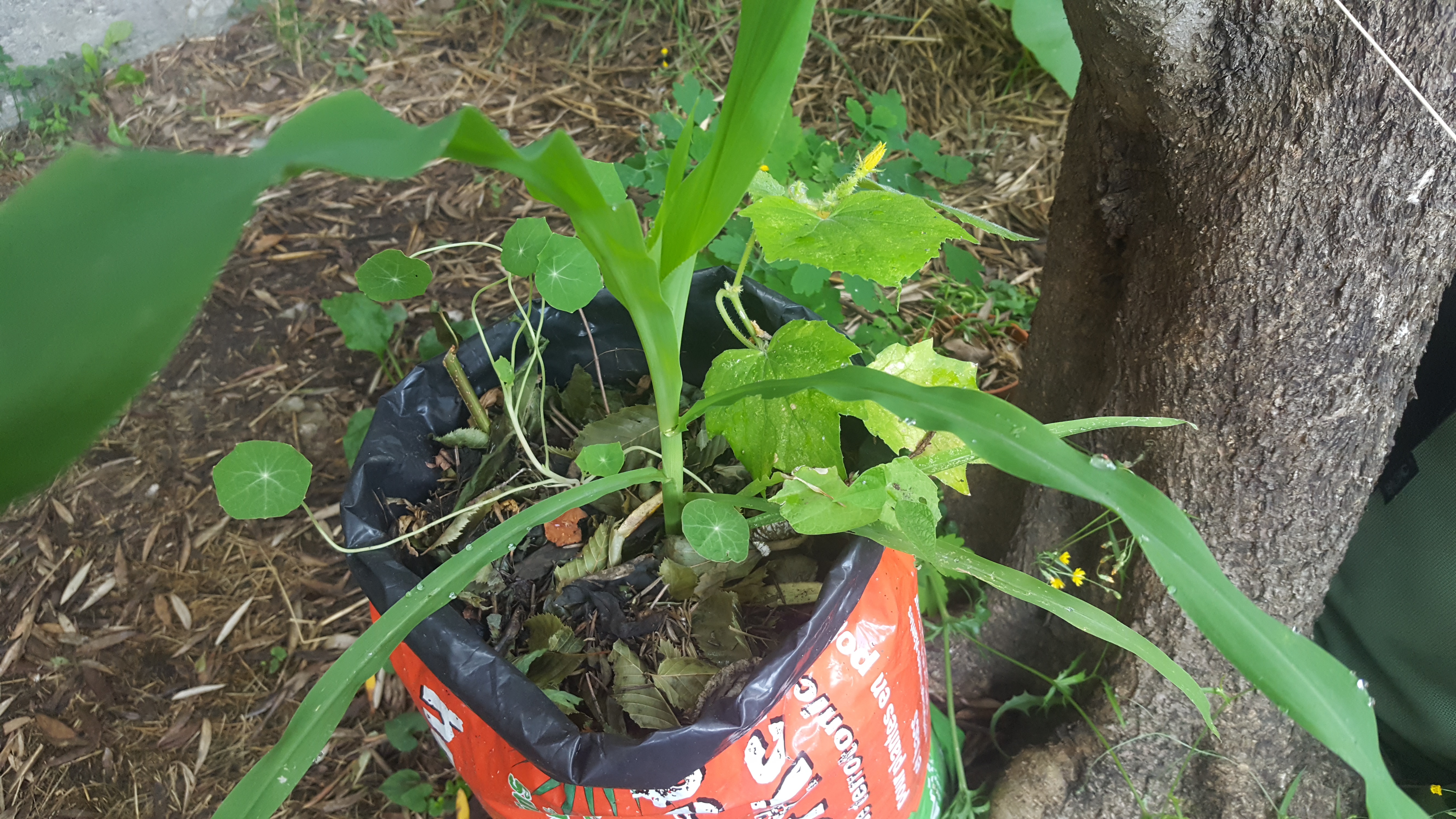Rappelez-vous, il s’agit d’une association de culture qui nous vient d’Amérique Latine : le maïs avec le haricot et la courge. Si cette culture semble très appropriée dans de grandes exploitations qu’en est-il dans nos jardins ou sur nos balcons ?