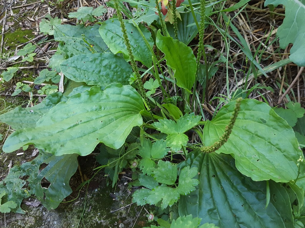 - Le grand plantain (Plantago major) ci-contre et le pissenlit (Taraxacum officinale) indiquent tous deux un sol qui manque d’air (piétinement). Le pissenlit est indicateur d’un sol riche voire trop riche avec une partie de la matière organique que le sol ne digère plus.