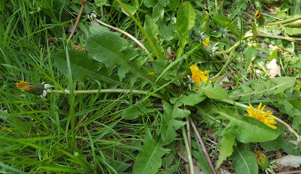 - Du grand plantain (Plantago major) et du pissenlit (Taraxacum officinale) ci-contre.