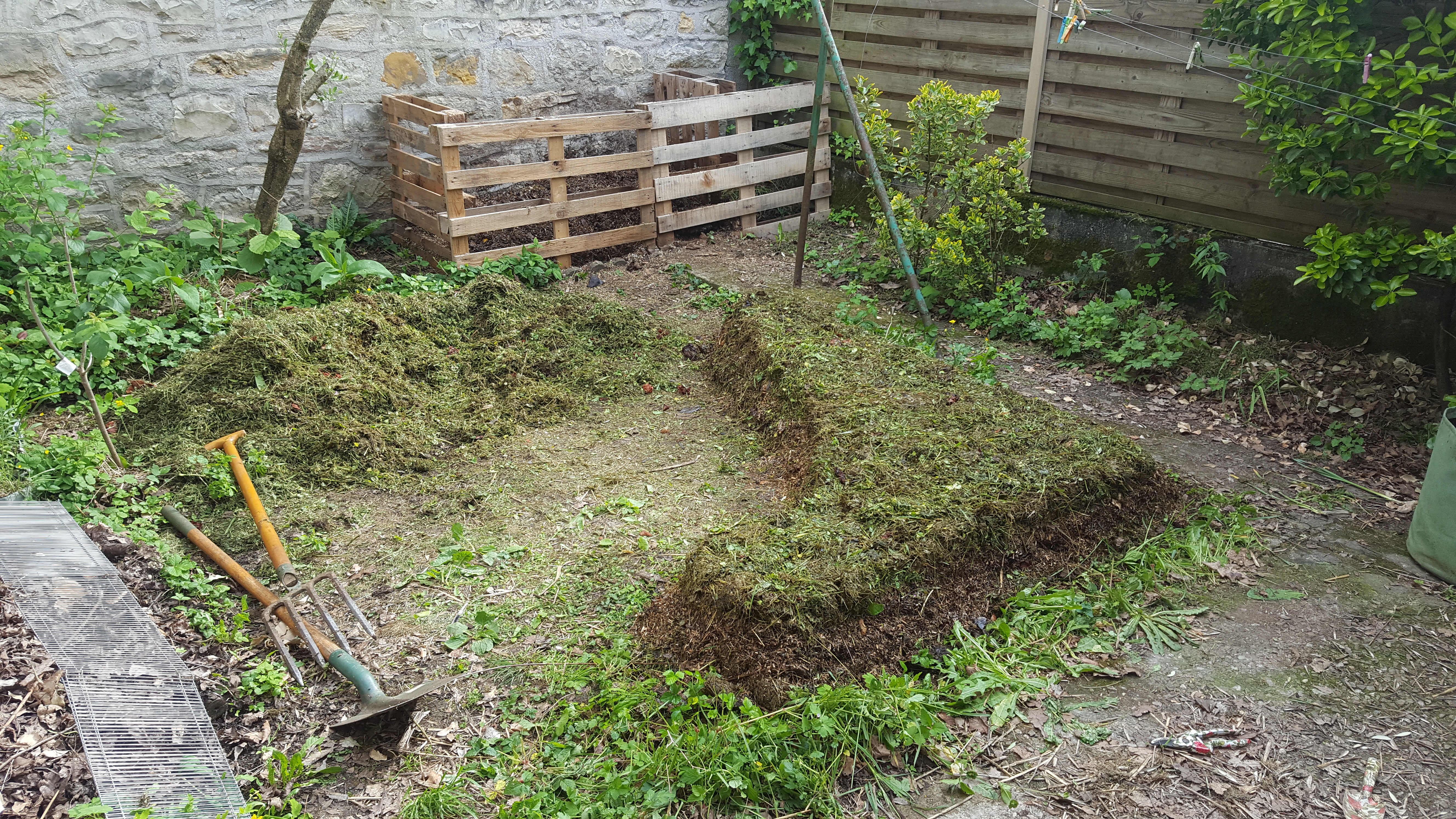 Oui, avec des feuilles mortes et vous pouvez remettre une couche humide et sèche le printemps venu pour recharger votre lasagne ou la laisser s’affaisser et remettre seulement du compost au printemps.