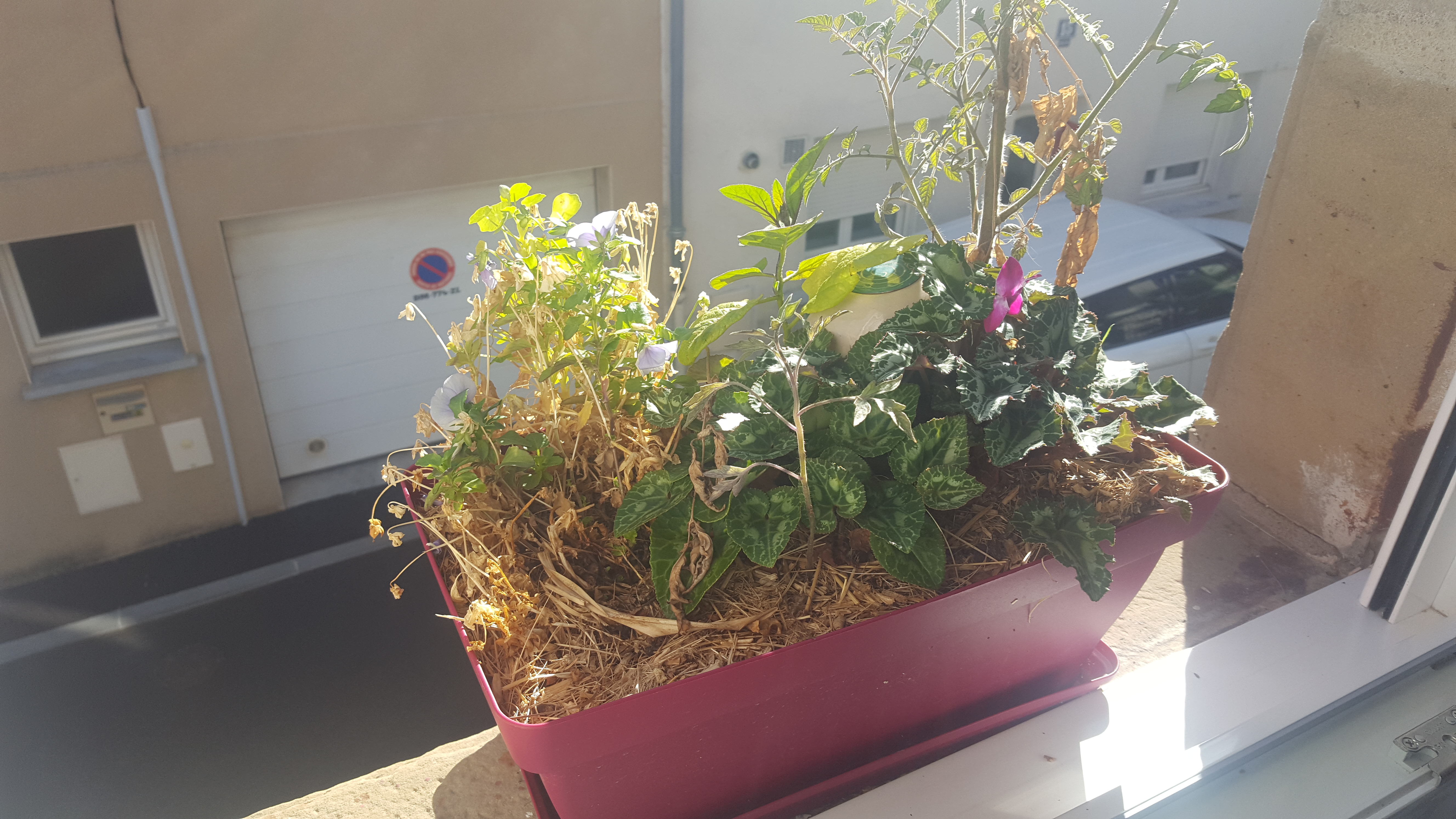 J’avais regarni les miennes avec des capucines et des plants de tomates cerises cet été. Elles se portent plutôt bien sauf celle du rez-de-chaussée où tout ce que j’avais planté et semé n’a rien donné sauf un magnifique zinnia (c’est d’ailleurs seulement là qu’il était le plus beau !).