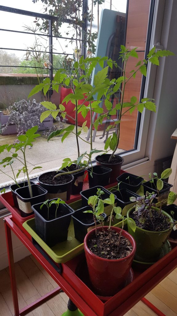 - semons dès la mi-février (ci-contre en avril des plants semés en février) en godets même si cela fait du travail de repiquage en plus mais il faut que les graines germent et pour cela il faut de la chaleur. Vous pouvez également utiliser une couche chaude si vous en avez.