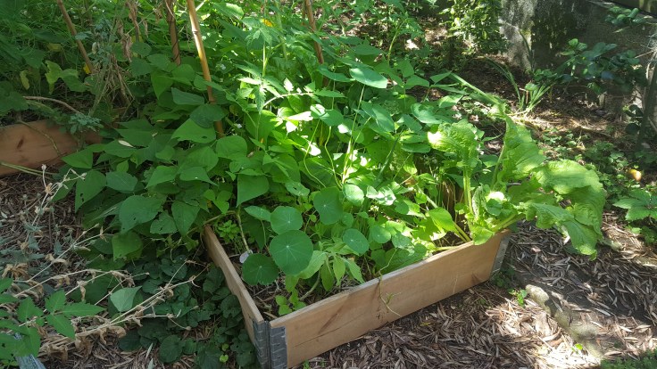 - en dégageant le centre des plants et en éliminant les adventices qui poussent spontanément autour de vos plants. Pourquoi ? Parce que les adventices sont aussi des plantes et que leurs feuilles gardent l’humidité. Il s’agit en fait de toujours faire circuler l’air, le qi du jardin (je le savais, tout est une question d’énergétique).