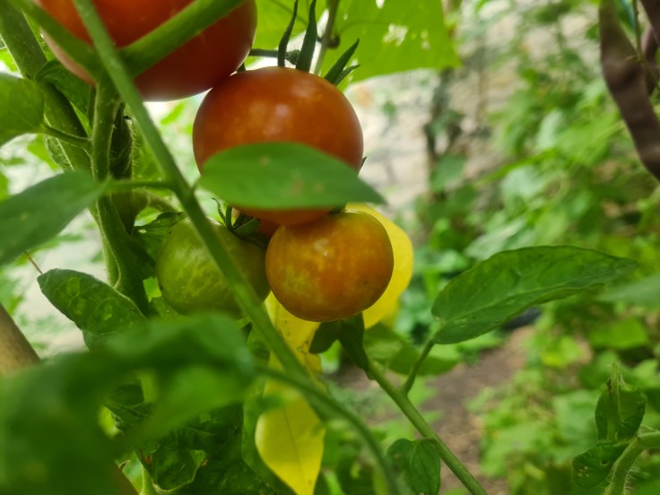 Les tomates : star de l’été, elles sont toujours bien représentées et goûteuses à souhait. Si vous avez pris soin d’échelonner vos semis, de choisir plusieurs variétés et de planter tout ce petit monde à des moments différents sur les mois d’avril et mai, vous êtes assurés d’avoir toujours quelques tomates à récolter chaque jour que Dieu fait.