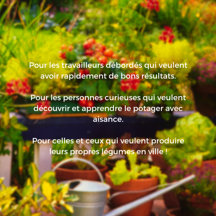 Vous vous dites que c’est une blague, qu’un potager ça va vous prendre un temps fou et que ce pack ne répondra pas tout à fait à votre situation ? Eh bien, détrompez-vous ! J’ai développé une méthode qui vous permettra non seulement d’avoir un potager fertile, quel que soit l’espace dont vous disposez, mais surtout, le contenu de ce pack est conçu de manière à pouvoir rapidement vous mettre en action.
