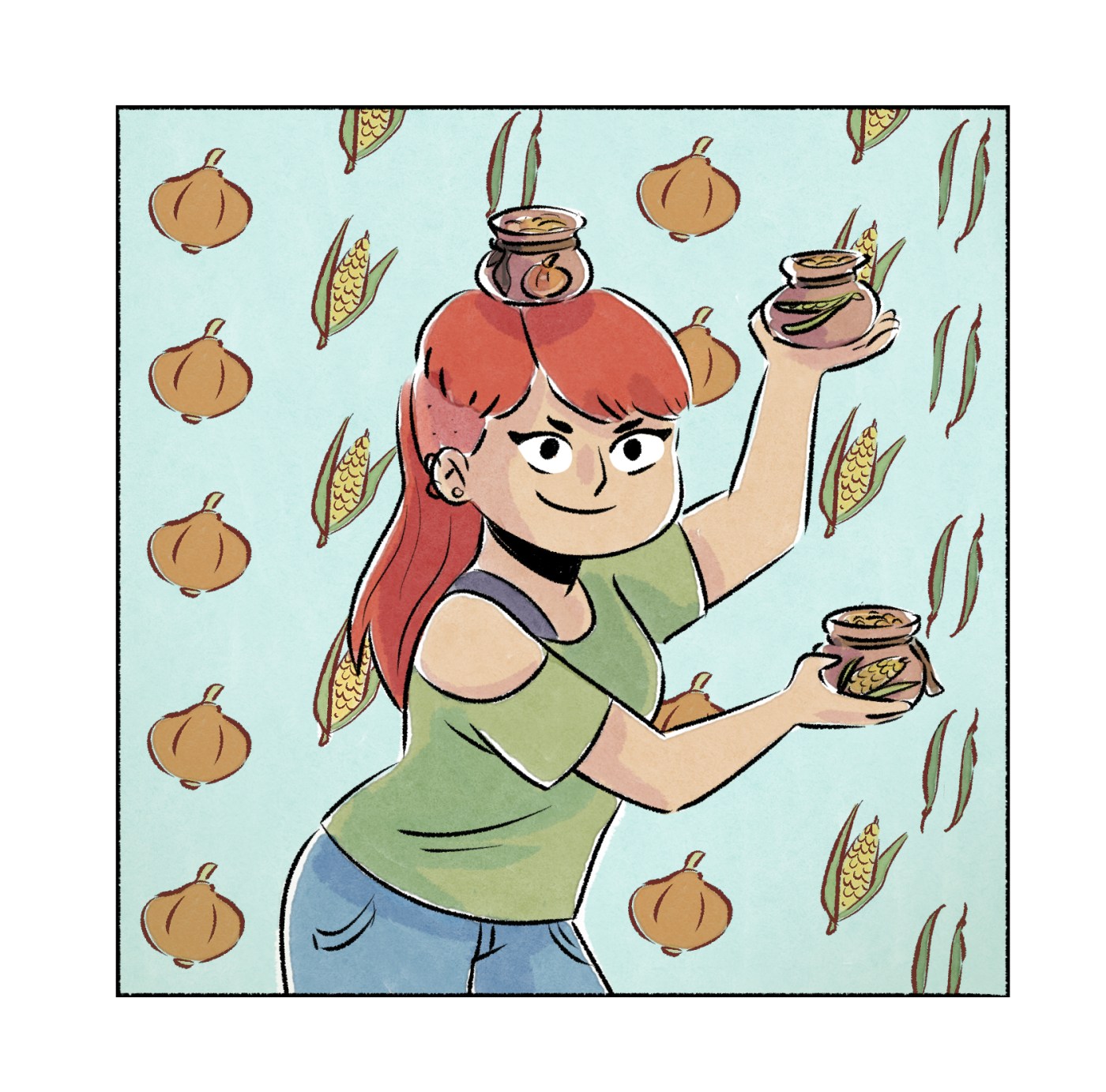 Retrouvons donc Capucine qui fait des entrechats en balançant des graines de maïs, de haricots et de courges (des potimarrons) apparemment n’importe comment, au grand désespoir de Satya. Mais que fait-elle en ce doux mois de mai ?