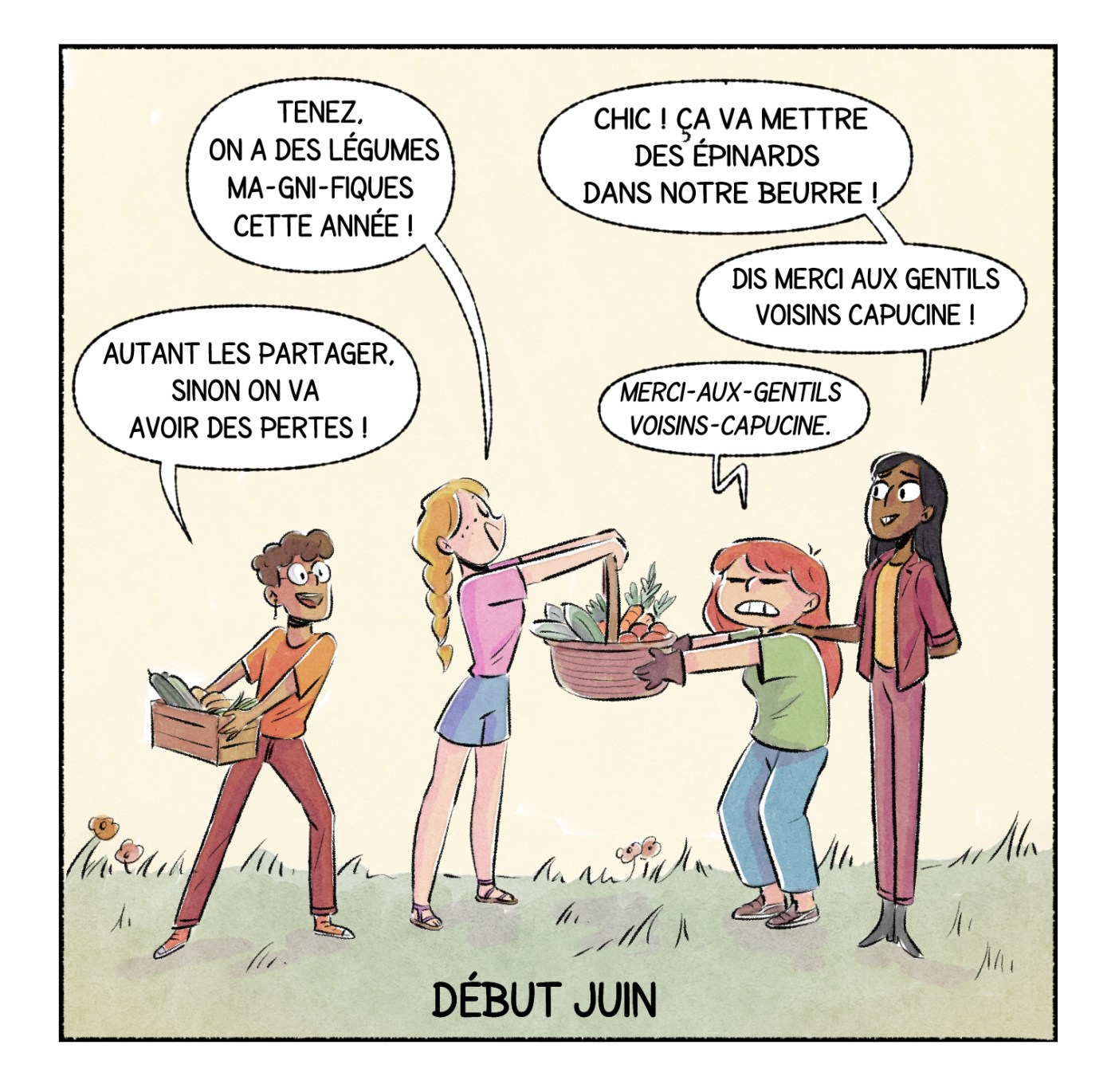Capucine a mis en place un cercle vertueux en portant une attention toute particulière au sol, en laissant le temps à ses plantes de germer et de pousser et en les installant sur un sol hyper productif qui va quadrupler ses récoltes par rapport à celles de ses voisins (mais ça, elle ne le sait pas encore).