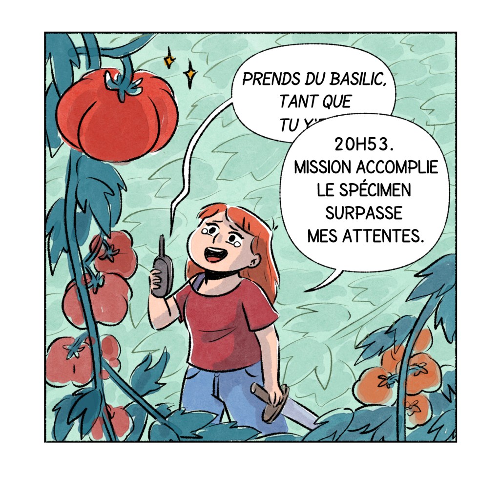 Parés à prendre votre machette et votre talki pour récolter une merveilleuse tomate dans un potager-forêt-vierge ? Promis vous n’attendrez pas 4 heures comme Satya pour manger, Capucine en fait toujours un peu trop !