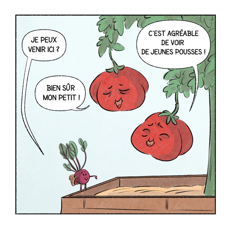 - les tomates, quant à elles, sont pleines de sagesse et accueillent les betteraves et autres légumes avec beaucoup de bienveillance !
