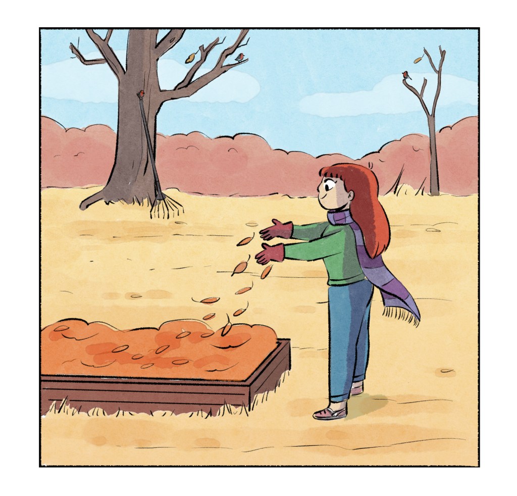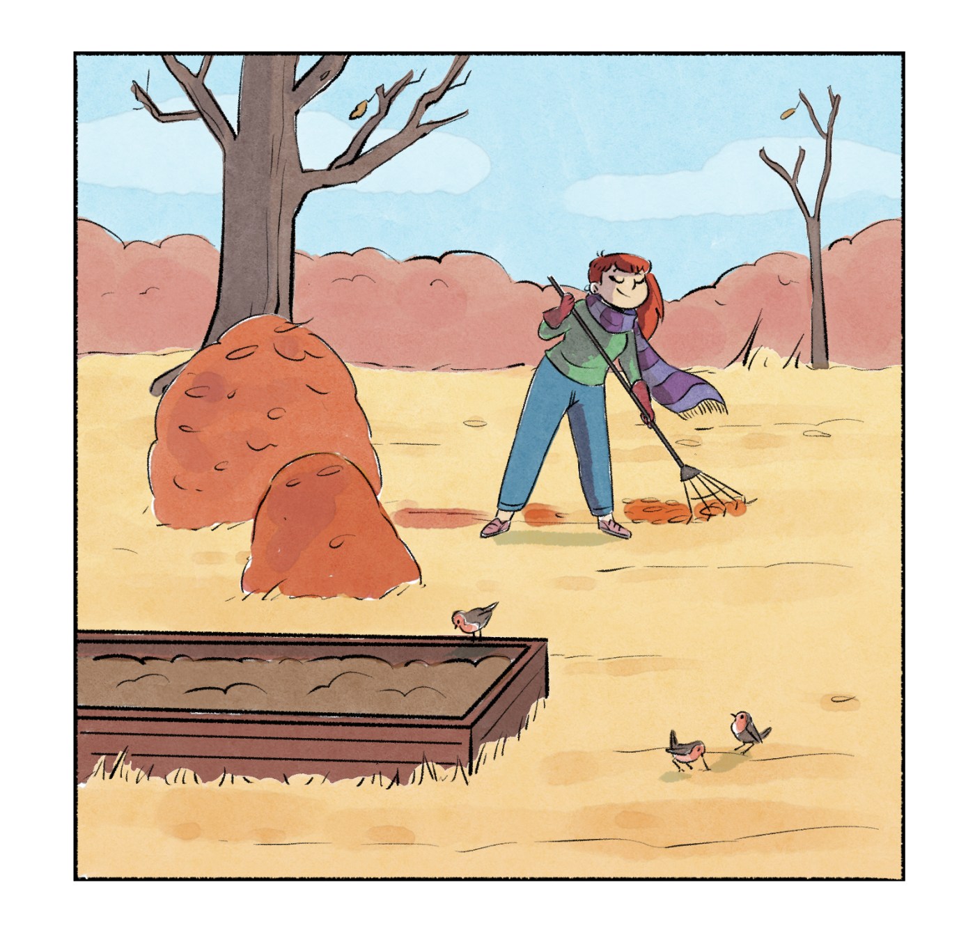 En octobre on rentre dans l’automne et qui dit automne, dit feuilles qui tombent ! Et si on voit bien Capucine ratisser avec application les feuilles mortes de son jardin ce n’est pas pour « faire propre », ni pour aller à la déchetterie se débarrasser de cette mine d’or ! Non, c’est bien sûr pour s’en servir comme paillage !