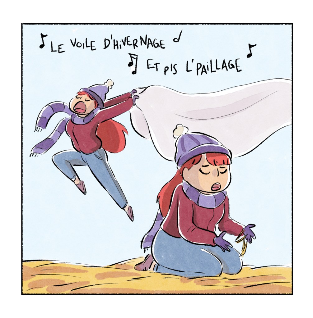 L’hiver ça rime quand même bien avec caillante donc même s’il n’y a plus que ça à faire – désolée Capucine – on paille ses plants de choux, de salades (liste non exhaustive) et si les températures s’annoncent négatives on met un voile d’hivernage sur nos plantes en plus !