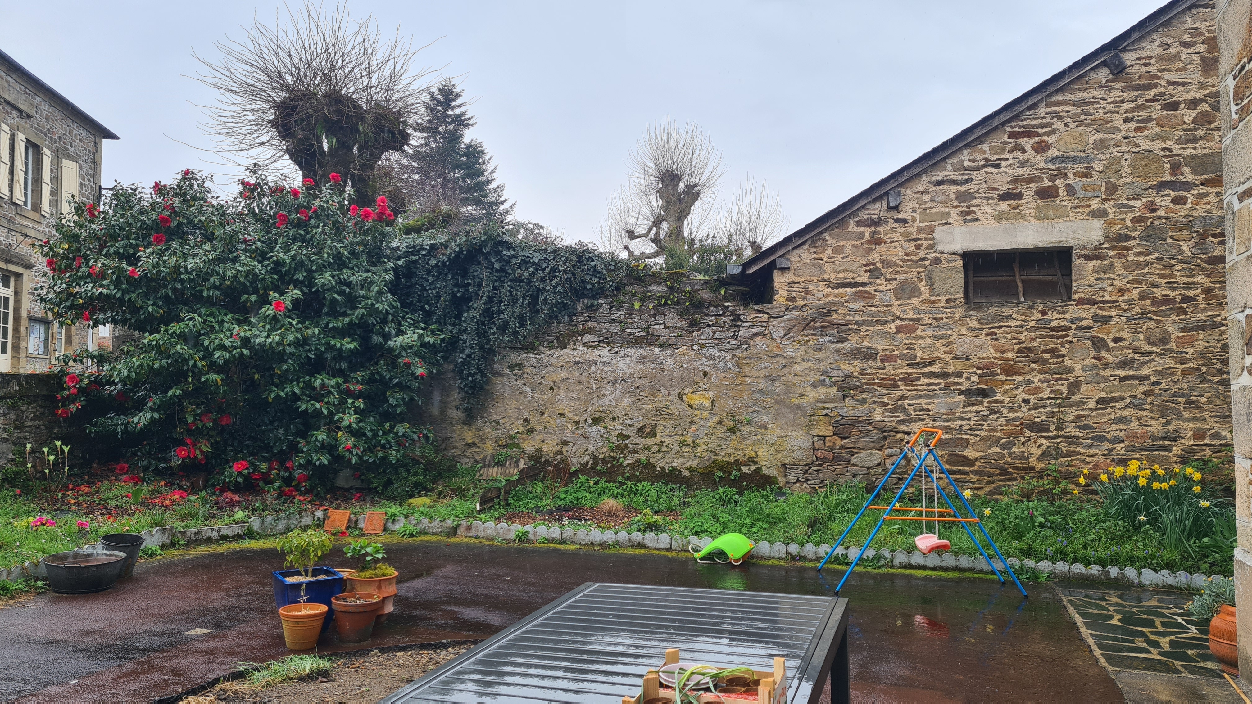 - Là ce n’est pas flagrant parce que le temps n’était pas au rendez-vous mais l’orientation est sud-ouest donc cette partie du jardin est très bien exposée.