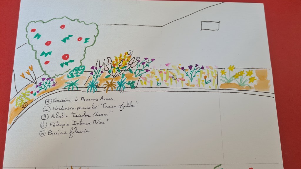 Lorsque j’arrive pour un coaching, je ne vous parle pas directement de plantations avant d’avoir regardé, analysé, etc. Sinon c’est un peu comme si j’arrivais chez vous avec un camion rempli de plantes sans connaître ni l’exposition, ni la superficie, ni même vos goûts, ça n’a aucun sens ! Non en réalité, je prends le temps d’observer, de comprendre l’environnement, vos envies, vos besoins et puis… c’est le moment du dessin !