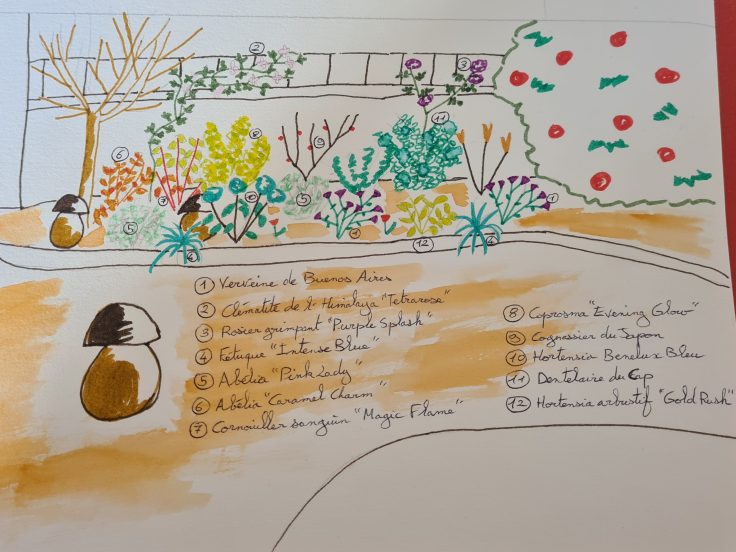 Alors si vous aussi vous avez un jardin, un balcon et que vous ne savez pas par où commencer, je peux vous aider à y voir plus clair… parfois, il suffit d’un dessin !